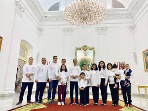 Bersama keluarga dalam acara Family Gathering Kabinet Kerja di Istana Kepresidenan Bogor, Minggu, 4 Agustus 2019.
